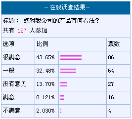 客户调查是企业实施市场策略的重要手段之一。通过开展行业问卷调查,可以迅速了解社会不同层次、不同行业的人员需求,客观地收集需求信息,调整修正产品策略营销策略,满足不同的需求,促进公司产品销售,同时也吸引了更多的长期用户群。该系统运行稳定、操作简单、调查的问题不受限制。可以在一个网站上同时进行两个以上的调查。基于Web界面的调查问卷生成系统,操作方便,并可以根据企业需求设计调查问卷的风格。
