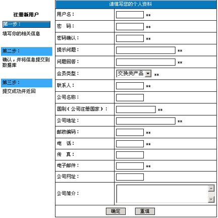 企业用户可以在网站上登记注册,选择会员的类别、查看的权限范围并成为预备会员,并提交到用户管理数据库。待网站审核通过后成为正式会员,享有网站提供的相应服务。
