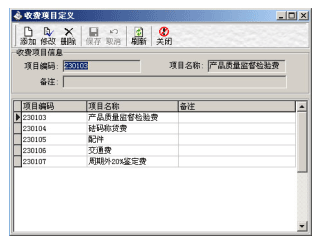 设定发票中的收费项目的编码和名称。