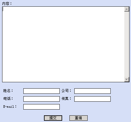 客户反馈系统在前台有一个非常友好的界面,客户可通过界面中提示的问题填写相应的答案,并提出自己的意见或建议,点击提交按钮,系统自动发信,并可设定自动弹出对话框,告知客户:您的信息已提交,我们会尽快与您联系;